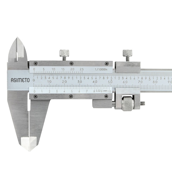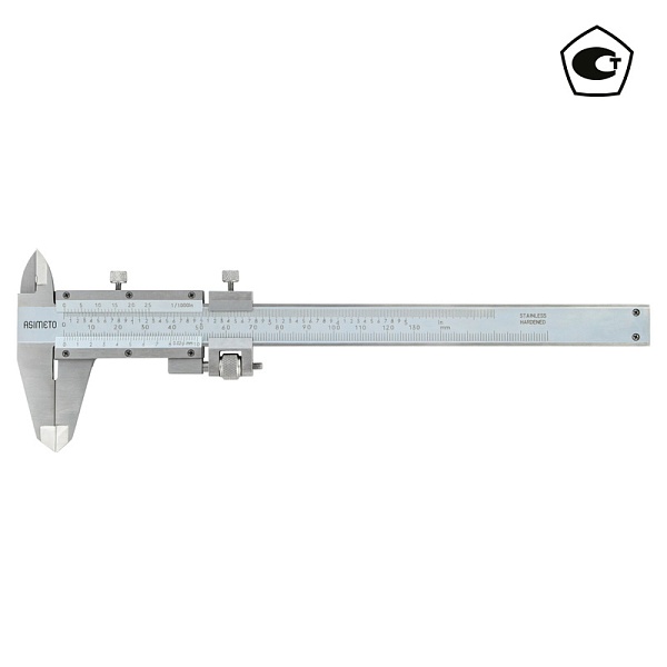 Штангенциркуль нониусный ASIMETO 363-05-6-П серии 363 из нержавеющей стали с губками для внутренних и наружных замеров и плоским глубиномером. Предназначен для измерения линейных размеров малогабаритных деталей.