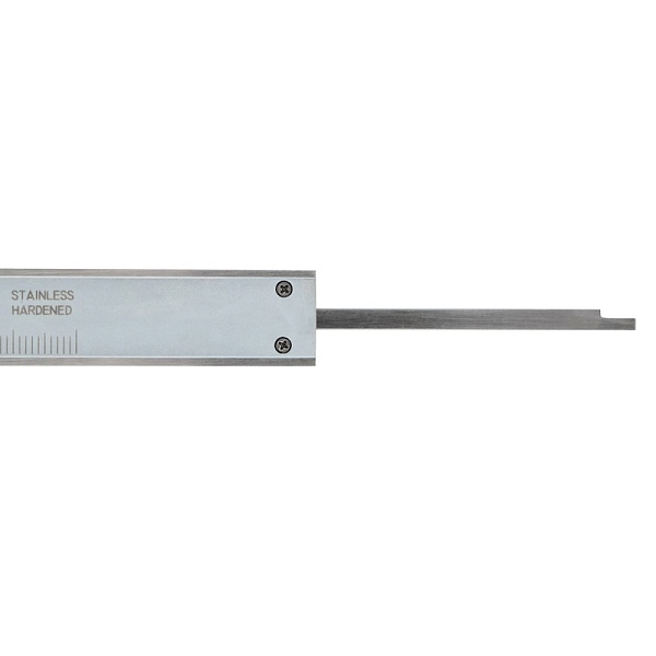 Матовое хромирование основной шкалы и нониуса обеспечивает высокий результат считывания. Плоский глубиномер позволяет измерить глубину отверстий диаметром от 2 мм.
