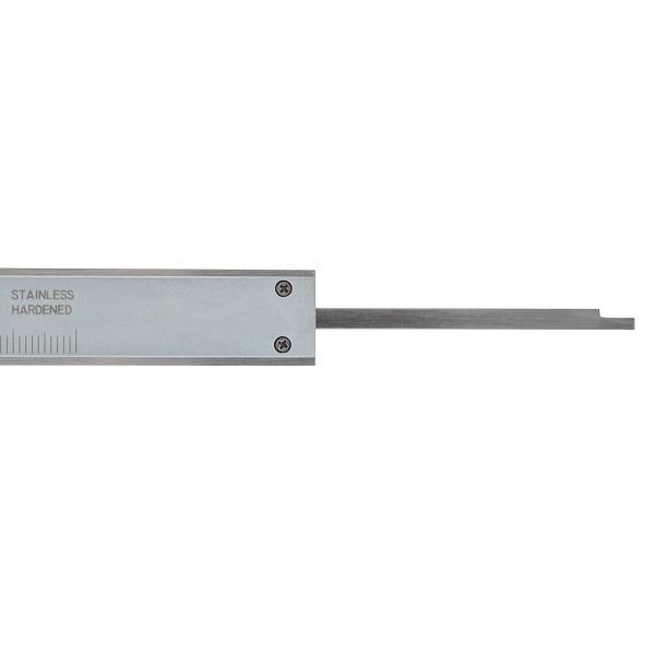 Матовое хромирование основной шкалы и нониуса обеспечивает высокий результат считывания. Плоский глубиномер позволяет измерить глубину отверстий диаметром от 2 мм.