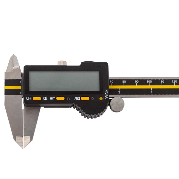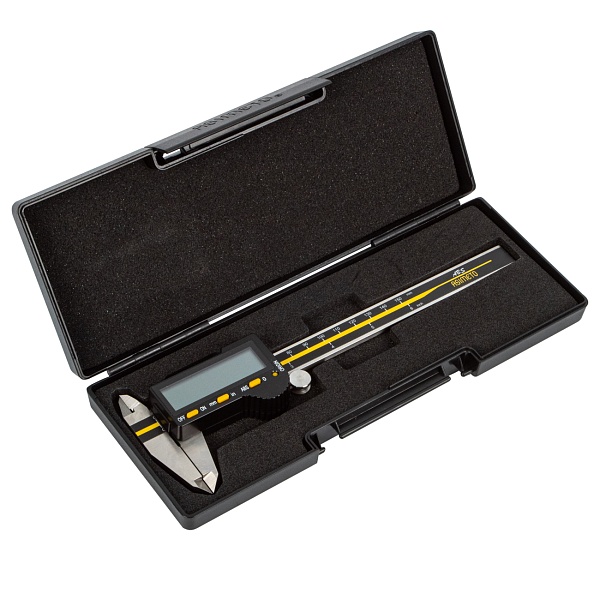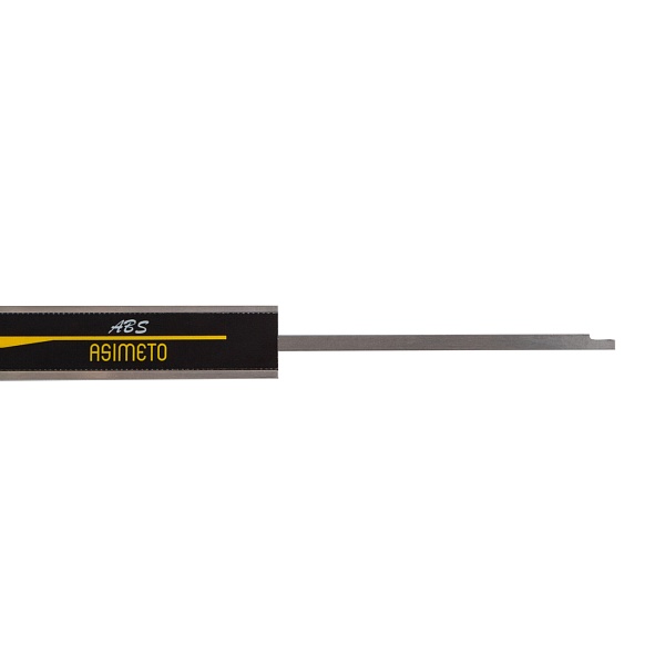 Цифровой штангенциркуль ASIMETO 306-06-3 для измерения наружных и внутренних размеров. При работе с цифровыми штангенциркулями результат измерений отображается на дисплее. Инструмент используют, когда данные необходимо получить быстро, без расчёта дополнительных шкал.