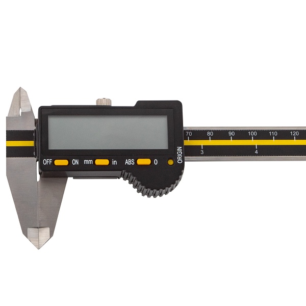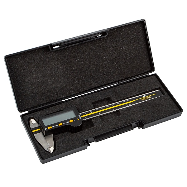 Цифровой штангенциркуль ASIMETO 306-06-4 для измерения наружных и внутренних размеров. При работе с цифровыми штангенциркулями результат измерений отображается на дисплее. Инструмент используют, когда данные необходимо получить быстро, без расчёта дополнительных шкал.