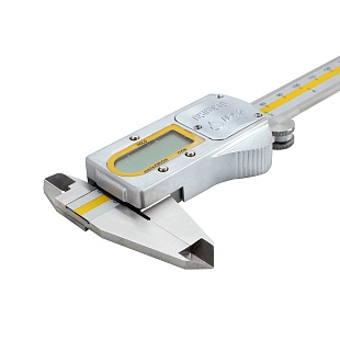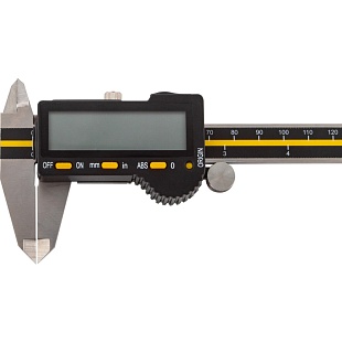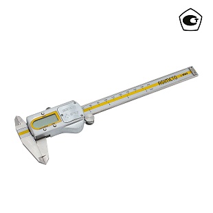 Цифровой штангенциркуль ASIMETO 306-08-6 для измерения наружных и внутренних размеров. При работе с цифровыми штангенциркулями результат измерений отображается на дисплее. Инструмент используют, когда данные необходимо получить быстро, без расчёта дополнительных шкал.