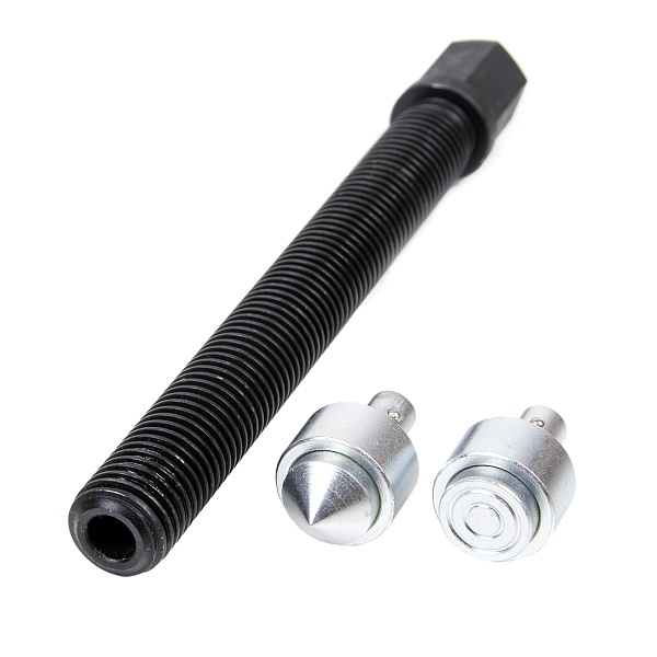 Две насадки на винт обеспечивают удобство работы на разных опорных поверхностях: коническая - там, где на валу есть центрирующее отверстие; плоская - там, где его нет.