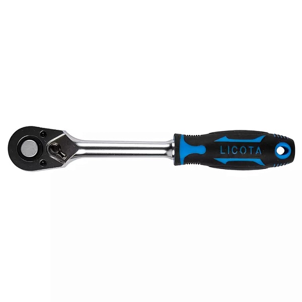 Трещотка со средним положением Licota ALH-00114F-HT для откручивания/закручивания гаек и болтов при обслуживании автомобилей и другой техники в домашних и автослесарных мастерских, на производствах или СТО. Предназначен для использования с торцевыми головками, головками со вставками, битами (через адаптер).
