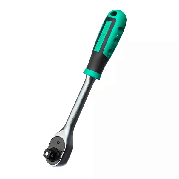 Трещотка изготовлена из закаленной хром-ванадиевой стали, устойчивой к механическим нагрузкам.