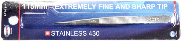 Пинцет прямой, рифленый 115 мм, Licota, AET-7114