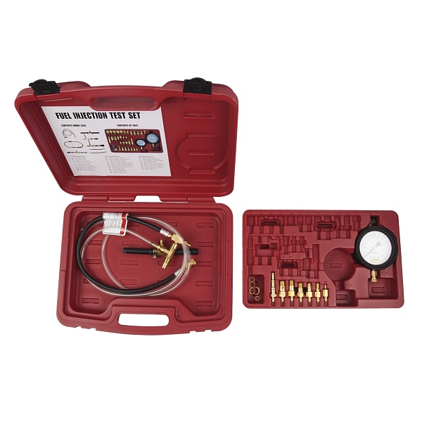 Комплект из 10 предметов в пластиковом кейсе позволяет выявить повреждение топливной магистрали, топливного фильтра, топливного насоса и регулятора.
