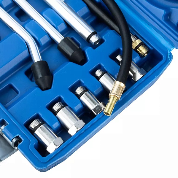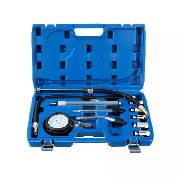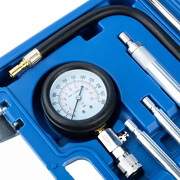 Компрессометр бензиновый, набор с гибкой, 2-мя жесткими насадками, 2-мя удлинителями и переходниками, SpecX, A71057