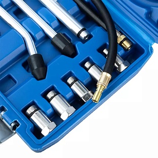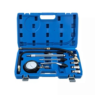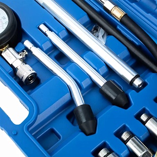 Набор из 8 предметов в пластиковом кейсе предназначен для измерения давления бензиновых двигателей легковых автомобилей и мотоциклов. Позволяет диагностировать герметичность камеры сгорания путем измерения компрессии (максимального давления воздуха) в камере сгорания в конце такта сжатия.
