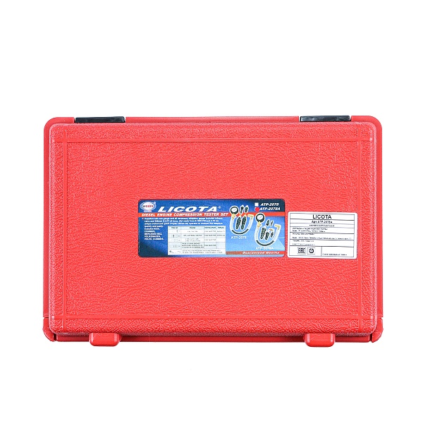 Компрессометр дизельный Licota ATP-2078A. Набор из 6 предметов в пластиковом кейсе предназначен для измерения компрессии дизельных двигателей. Позволяет диагностировать герметичность камеры сгорания путем измерения компрессии (максимального давления воздуха) в камере сгорания в конце такта сжатия.