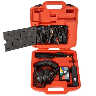 Комплект в пластиковом кейсе помогает определять посторонние шумы неисправных или износившихся деталей, вибрации и их источники в механических агрегатах: двигатель, трансмиссия, выпускная система, система охлаждения, топливная система и т.д.
