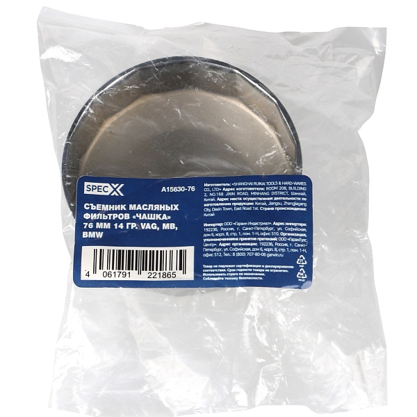 Съемник масляных фильтров "чашка" 76 мм 14 гр. VAG, MB, BMW, SpecX, A15630-76