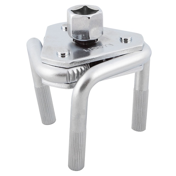 Предназначен для снятия фильтров больших диаметров, в том числе и дизельных двигателей. Используется с воротком или трещоткой с размером привода ⅜ или ½ дюйма, а также с ключом на 19 мм. Диапазон захвата - 65-120 мм.