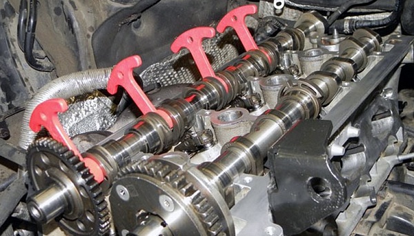 Комплект из 5 приспособлений применяется для фиксации плавающих кулачков на распредвале выпускных клапанов.