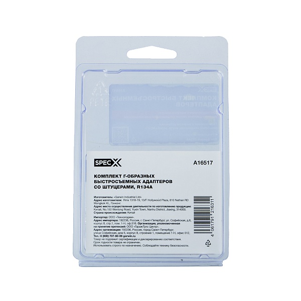 Комплект Г-образных быстросъемных адаптеров со штуцерами, R134A, SpecX, A16517