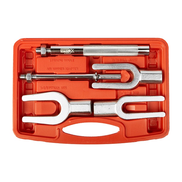 Набор съемников-"вилок" SPECX A26007. Комплект из 5 предметов в пластиковом кейсе. Универсальный набор для демонтажа шаровых опор и рулевых тяг легковых и легких коммерческих автомобилей.
