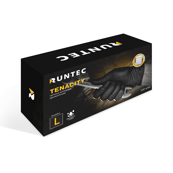 Перчатки Tenacity нитриловые высокопрочные, размер L (100 штук), RUNTEC, RT-GLVS-L